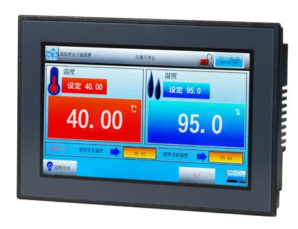 五、控制器:采用韓國TEMI880或TEMI990彩色觸屏控制器任選期一,中英文顯示,實時顯示曲線圖,可編程120組,120段程序,即:用戶把需要測試的溫濕度一段段輸進去,它做完這組數據后會自動跳到下一組數據。可通過USB、R232接口U盤轉存或連接電腦,設置參數,打印曲線報表等。